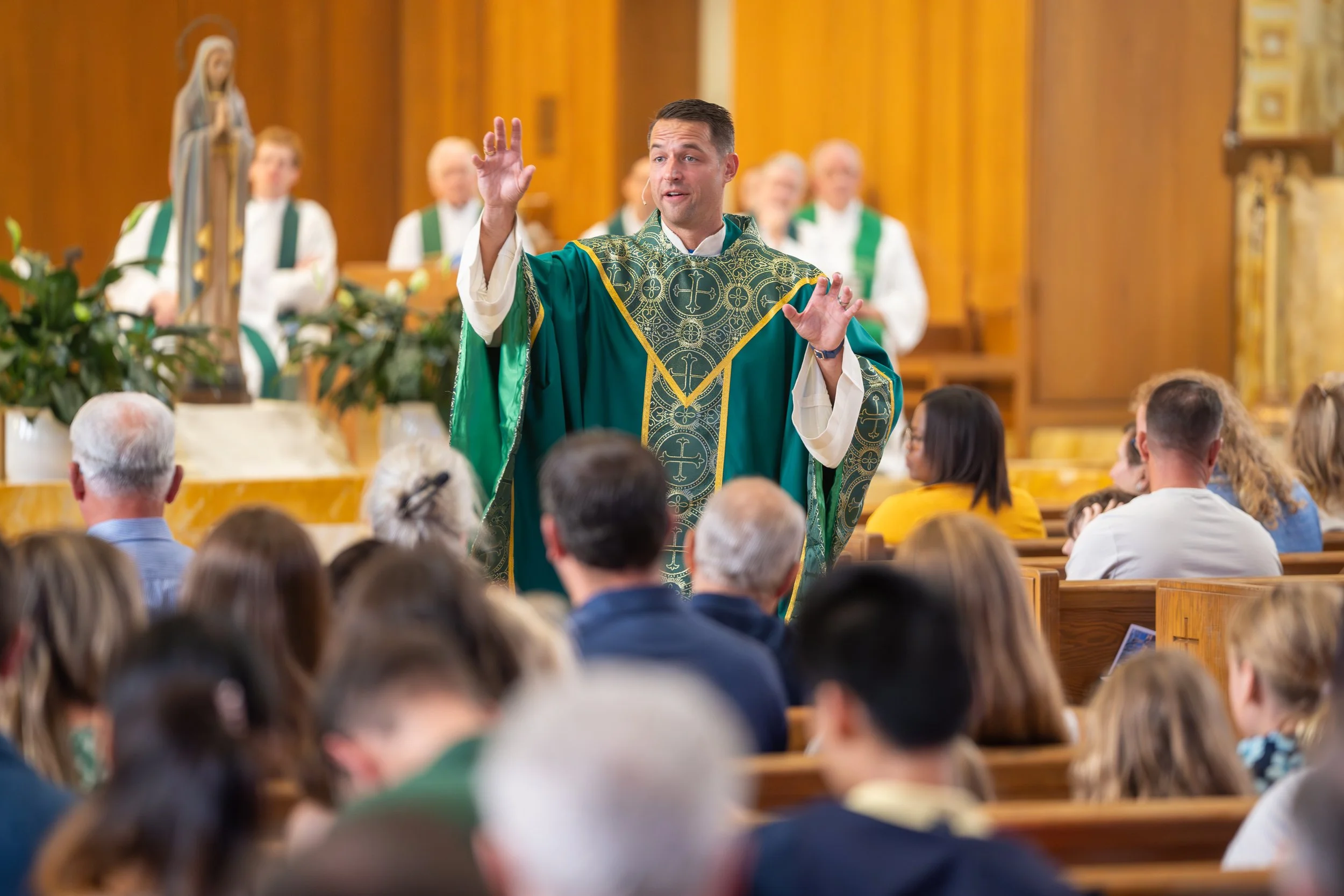 “I read it probably 567 times,” Fr. Laniauskas says. “And then, Saturday, by 4:30, here we go, I step out, and I shred the sheet of paper. This is to allow room for the Holy Spirit, and there have been times I’m preparing and truly feel a call to move more in this direction or that direction as it’s happening.”