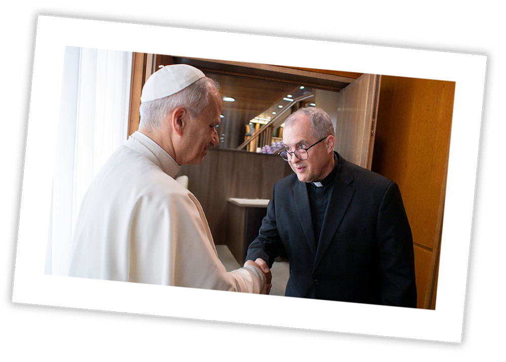 Very Rev. Karl J. Kiser, SJ, provincial of the USA Midwest Province, met Pope Leo XIV in Rome while attending a Meeting of Major Superiors (MMS) of the Society of Jesus in October 2025.