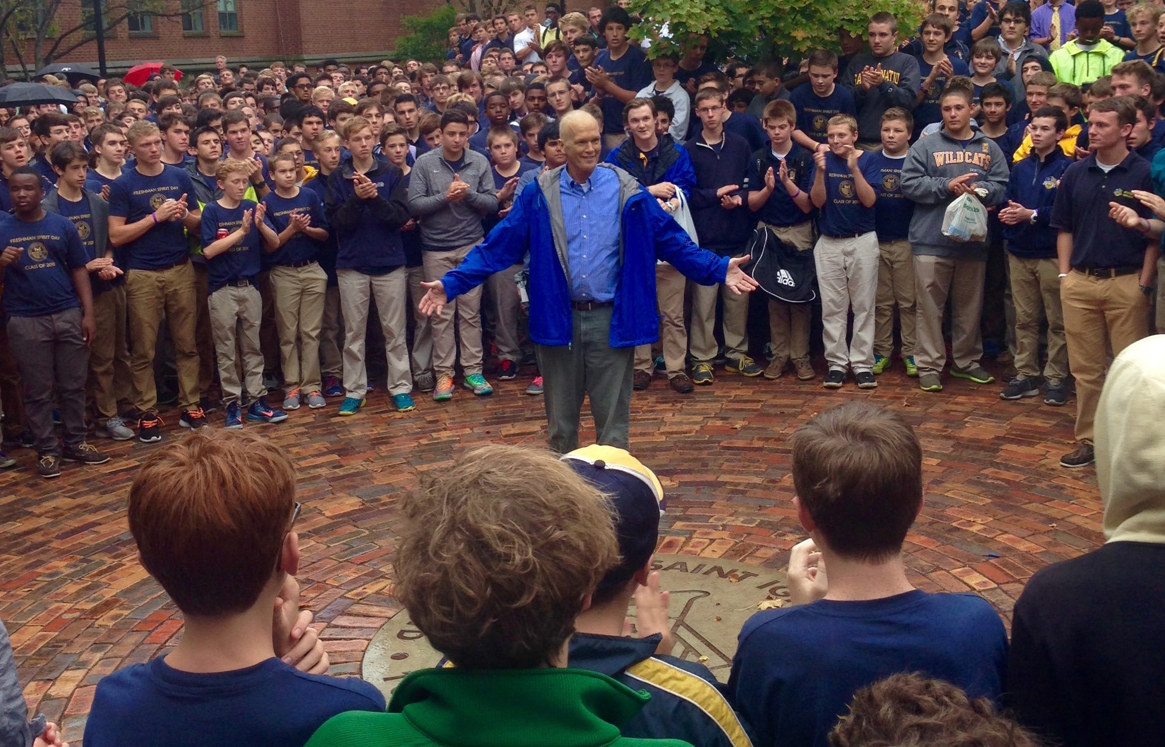 Jim Skerl says farewell to the student body on his last day at Saint Ignatius High School in Cleveland.